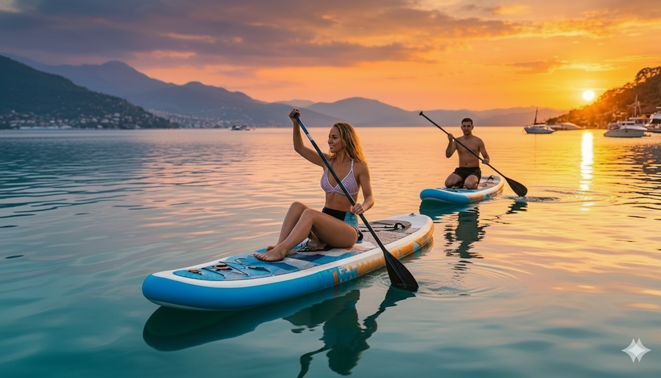 Fethiye, turkuaz denizi ve sakin koyları ile Türkiye’nin en iyi su sporları bölgelerinden biridir. Özellikle paddle board (SUP) yapmak isteyenler için birçok farklı noktada eşsiz manzaralar ve sakin sular bulunur.
